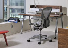史上最も有名な人間工学に基づいてデザインされたワークチェアです。使う人の身体の曲線に沿う、通気性のあるメッシュ素材の「ぺリクル」を初めて採用しました。あらゆる体型にフィットして、熱をこもらせずに仕事への集中度を高めるチェアとして、支持されています。