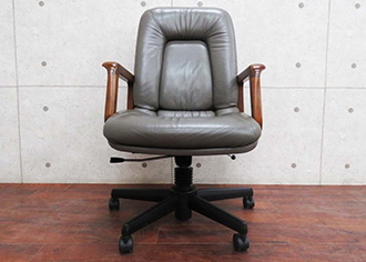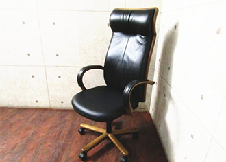 オフィスチェア/デスクチェアを買取させて頂きました。木製家具をメインに製造しているカリモクですが、買取したオフィスチェアのように本革を使った家具も評判が高くて、人気があります。アームの部分に木材が採用されていますが、当たってもいたくないように角は丸くなっていて、直角になっていないところも、カリモクのこだわりを感じさせます。レバーでチェアの高さも自由に調節可能です。