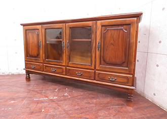 カリモクのコロニアルシリーズのHC4500、キャビネット/サイドボードを買取いたしました。クラシックでアンティークな雰囲気も持っているシリーズで、深さと重みのある木材の色や木目が、あるだけで空間そのものを落ち着いた空気にしてくれそうです。ガラス張りなのでコレクションケースや食器棚としても使えます。取っ手部分も細かく装飾が施されていて、カリモクの木に対する情熱の他にも、一切の妥協をしない製品づくりを感じられる一台です。